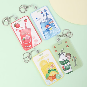 Cross Border Direct Cute Summer Drink Series Slide Cover Waterproof Student ID hard Card Holder Sleeve Lanyard Key Chain