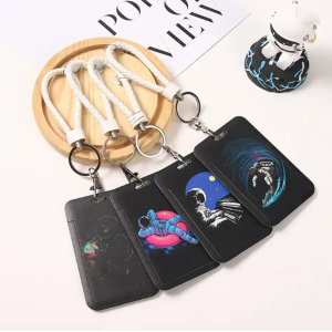 Hot Sale Cool Astronaut Black Series Sliding Cover Waterproof Cartoon Hard Card Sleeve Key Chain Student ID Card Holder