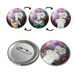 2023 New Product Japanese Anime Character Pins 3D Changing Flip Badges 3D Lenticular Anime Motion Pins Button Badges Tinplate