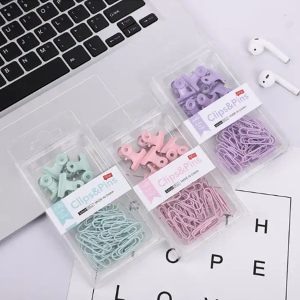2-in-1 Office Combo Set Macaron Color Paper Clip Ticket Binder Clip Round Head Clip
