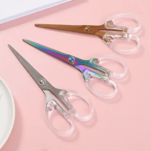 Factory direct supply transparent rose gold gold scissors office household paper-cutting knife student stationery scissors